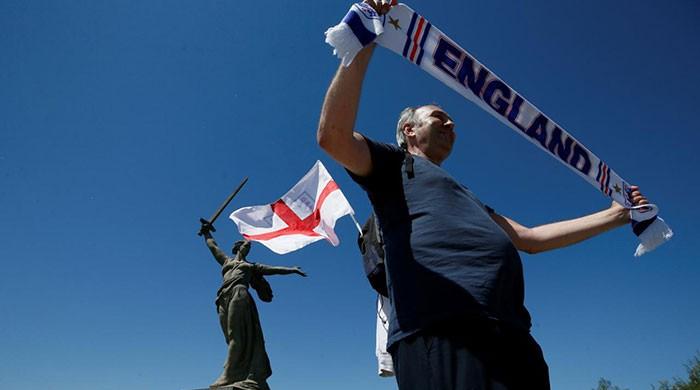 An England fan poses in front of "The Motherland Calls" monument at the Mamayev Kurgan World War Two memorial complex in Volgograd, Russia June 18, 2018. Photo: Reuters VOLGOGRAD, RUSSIA: England soccer fans and a top British diplomat paid tribute...from GEO TV - Sports https://ift.tt/2JURamn
